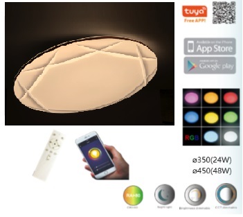 LED диммируемый потолочный светильник с пультом ДУ и разноцветным светом, 48W